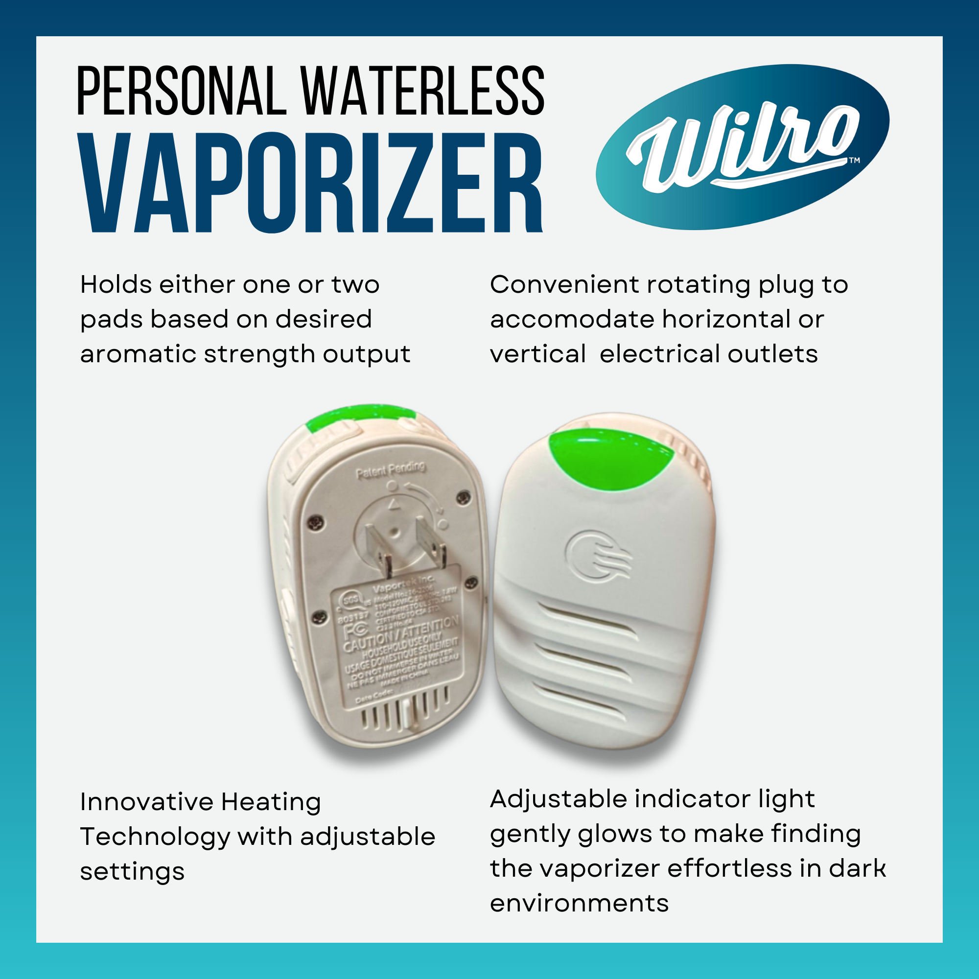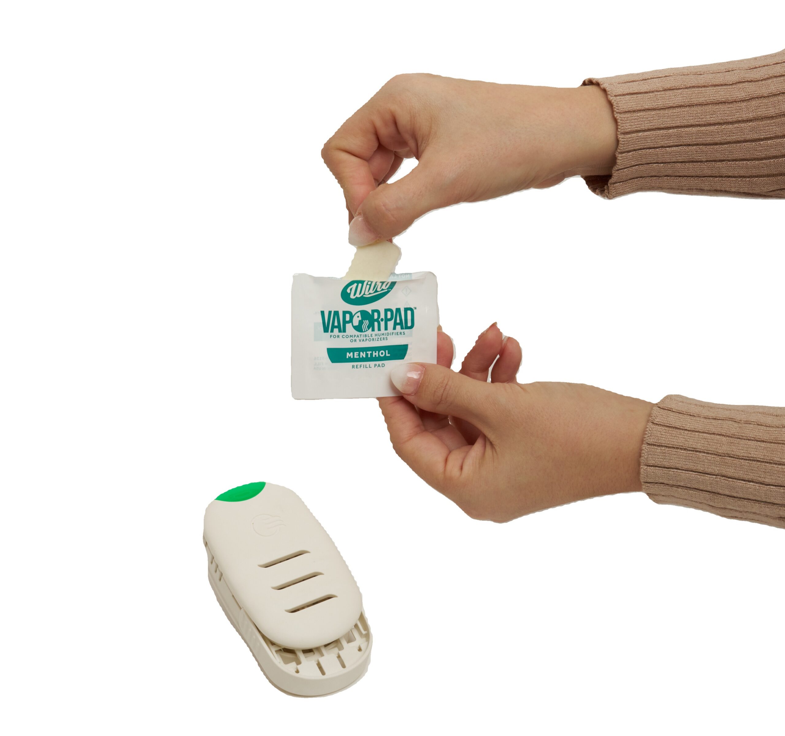 Personal vaporizer that works with Wilro Vapor Pads to deliver soothing scents to those seeking temporary relief from cold/flu symptoms.